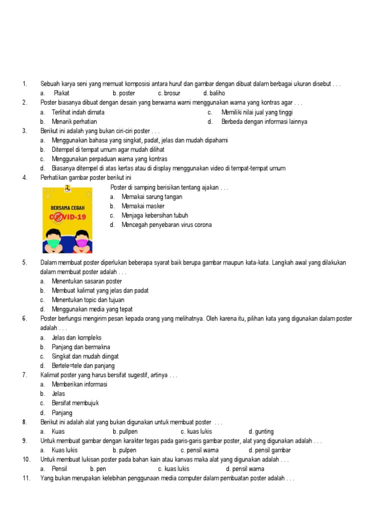 Berikut adalah kumpulan contoh soal SBK kelas 1 semester 1 yang mencakup berbagai aspek materi, lengkap dengan kunci jawaban atau petunjuk penilaian.